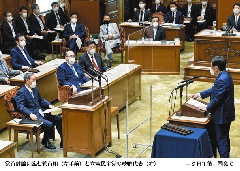 日本維新の会の片山虎之助共同代表は21年度補正予算編成の必要性を指摘したが、首相は「状況を見て判断する」と語った。 (東京新聞 2021年6月9日 21時47分)
