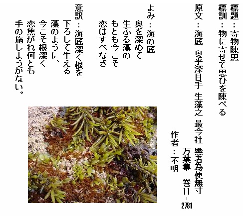 巻11-2781:海の底奥を深めて生ふる藻のもとも今こそ恋はすべなき