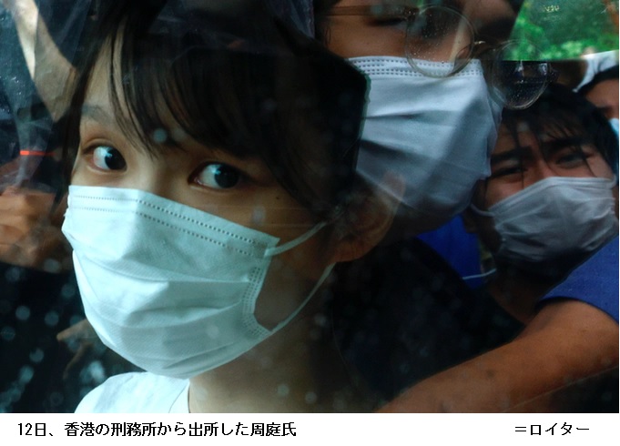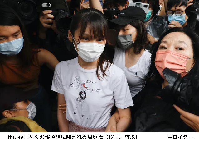 周氏は刑務所を出た後、多くの報道陣に囲まれたが、問いかけには応じず迎えの車に乗り込んだ。笑みはなかった。今回、半年あまりの服役を終えたのは2019年6月の警察本部を包囲したデモに関するもの。これとは別に香港国家安全維持法の違反容疑の捜査は継続中とみられ、再び起訴される可能性もある。