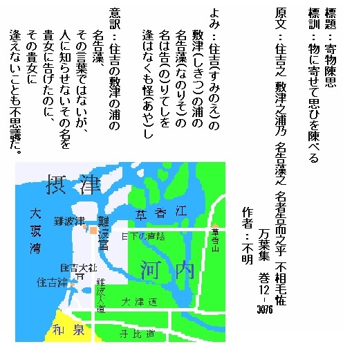 巻12-3076:住吉の敷津の浦のなのりその名は告りてしを逢はなくも怪し