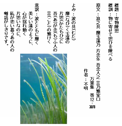 巻12-3078:波の共靡く玉藻の片思に我が思ふ人の言の繁けく