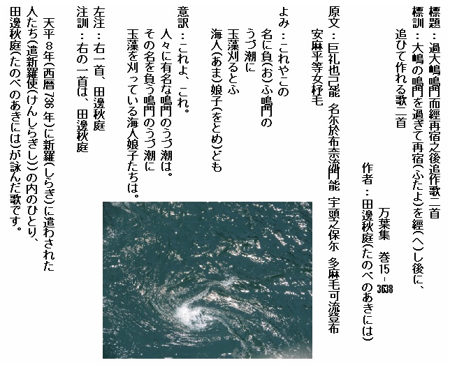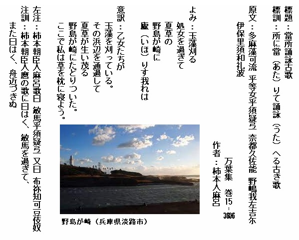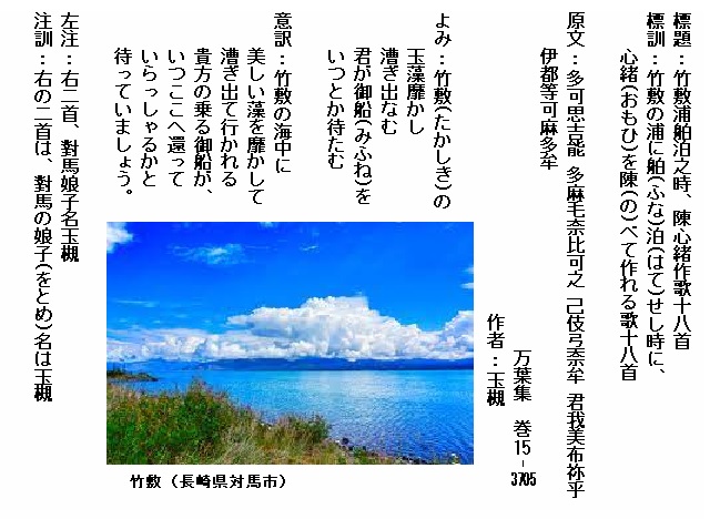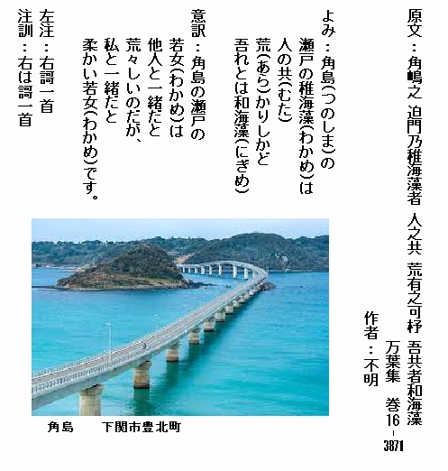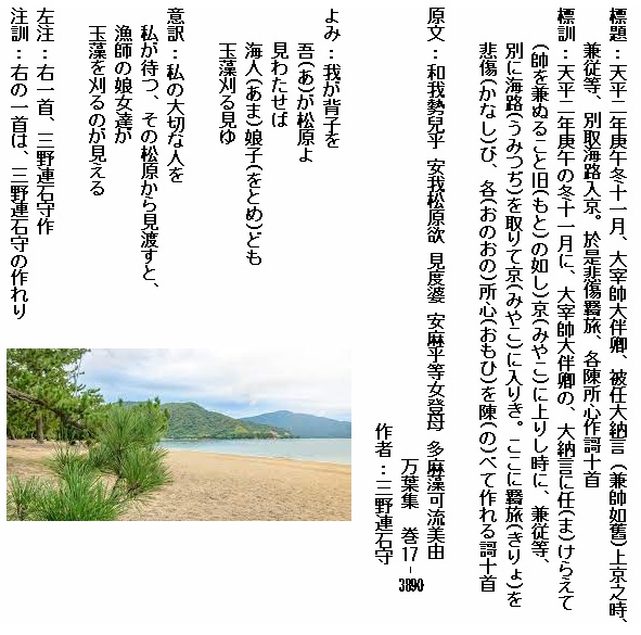 巻17-3890:我が背子を安我松原よ見わたせば海人娘子ども玉藻刈る見ゆ