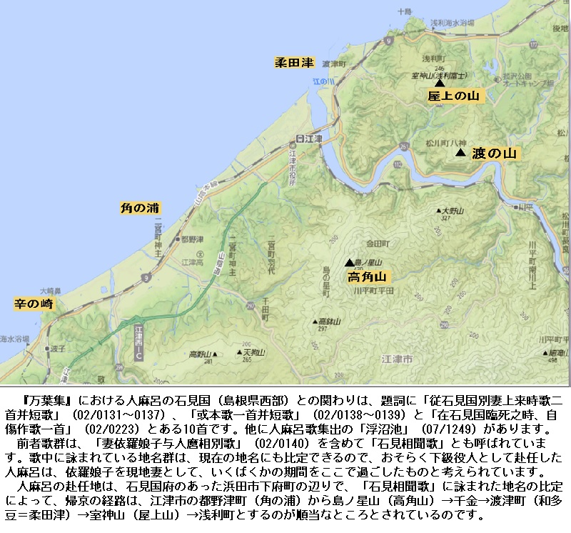 巻2-0138: 石見の海津の浦をなみ浦なしと人こそ見らめ.......(長歌)