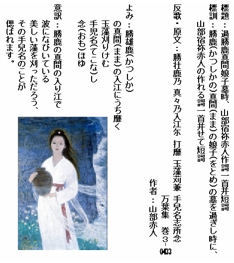 標題:過<敏馬>浦時山部宿祢赤人作歌一首[并短歌]