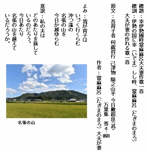 ※作者は当麻麻呂妻(たいまのまろのつま)です。