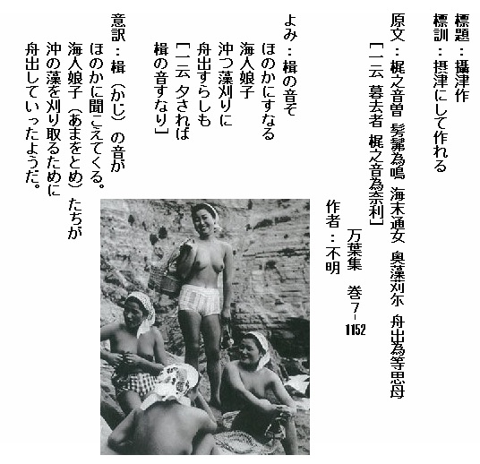 巻7-1152:楫の音ぞほのかにすなる海人娘子沖つ藻刈りに舟出すらしも