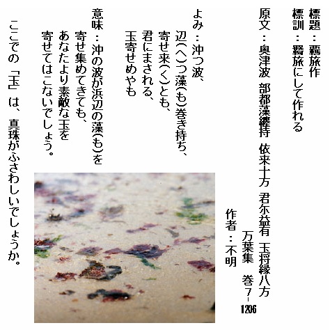 巻7-1206:沖つ波辺つ藻巻き持ち寄せ来とも君にまされる玉寄せめやも