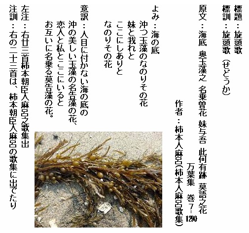 巻7-1290:海の底沖つ玉藻のなのりその花妹と我れとここにしありとなのりその花