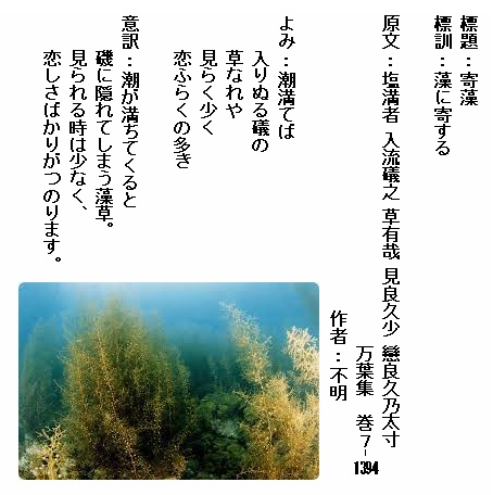 巻7-1394:潮満てば入りぬる礒の草なれや見らく少く恋ふらくの多き