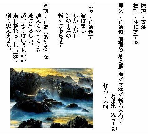 巻7-1397:荒礒越す波は畏ししかすがに海の玉藻の憎くはあらずて