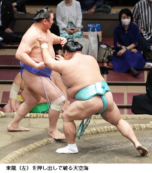 ▽十両の東龍に天空海は、天空海が押し出しで勝ちました。