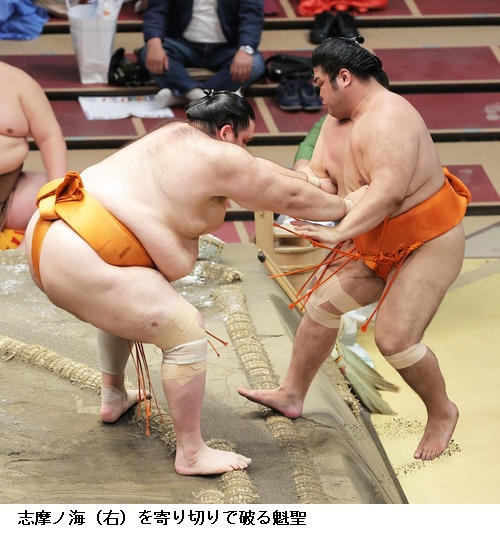▽魁聖に志摩ノ海は、魁聖が寄り切り。