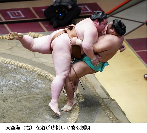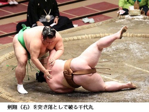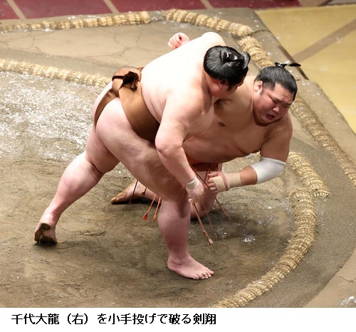 ▽千代大龍に剣翔は、剣翔が小手投げ。