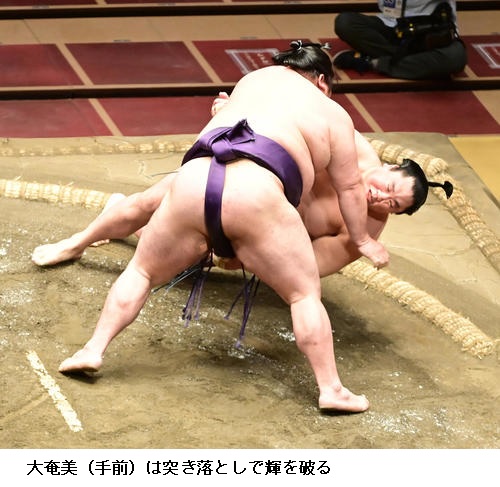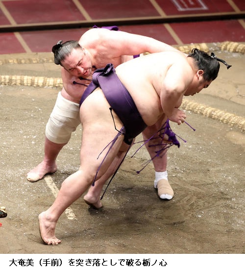 ▽大奄美に栃ノ心は、栃ノ心が突き落とし。