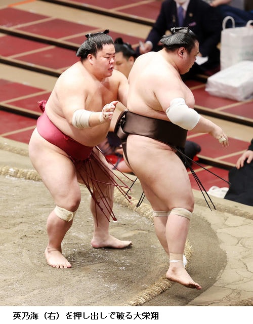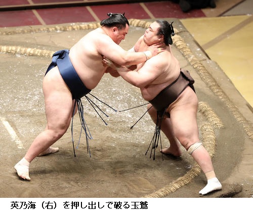 ▽玉鷲に英乃海は、玉鷲が押し出し。