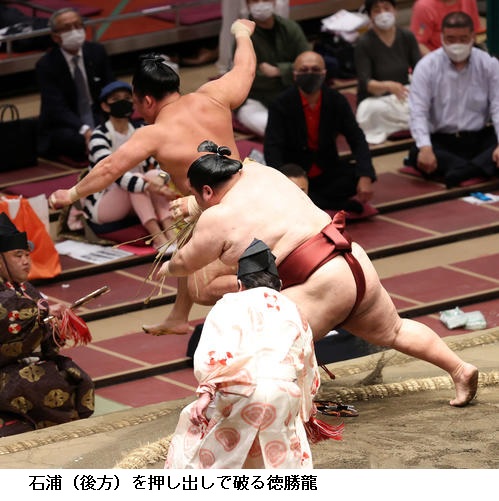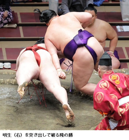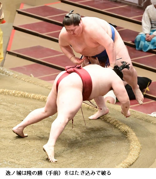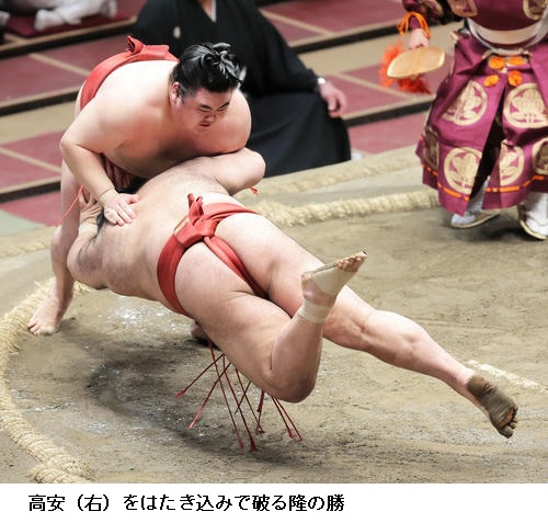隆の勝は連敗を5で止めて4勝目をあげ「苦手の相手とか関係なく思い切り前に出ようと思っていた。もう1回仕切り直して1日一番集中して白星重ねていきたい」と話していました。