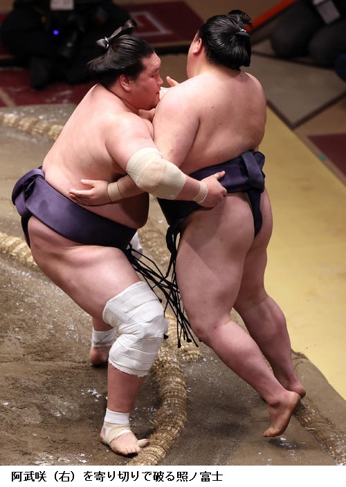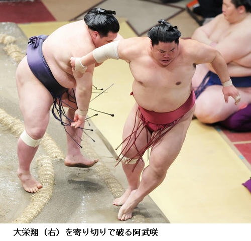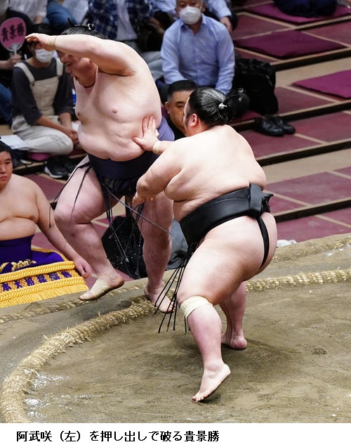 ▽大関 貴景勝に阿武咲は、貴景勝が押し出しで勝って2敗に踏みとどまりました。