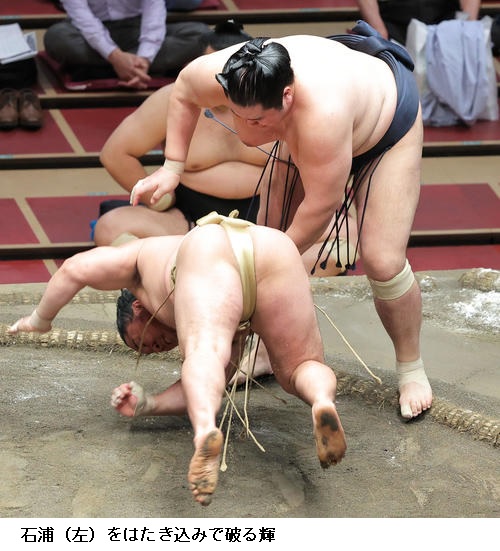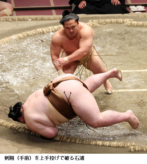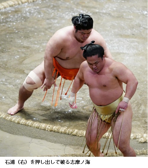 ●石浦 しっかり(相手の圧力を)止めて相撲を取ろうと思っていたけど、受け止められなかったのは自分の力不足。いなしとか横の動きに強い相手だが、相手に押されて相手のペースで取られてしまった。あと4日、気持ちを切らさずに1日一番大事にやっていきたい。