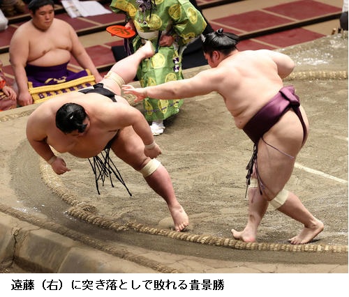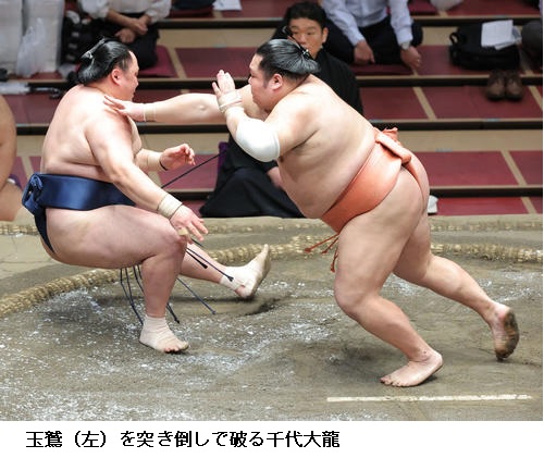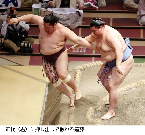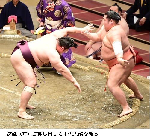 ▽千代大龍に遠藤は遠藤が押し出しで2敗を守りました。
