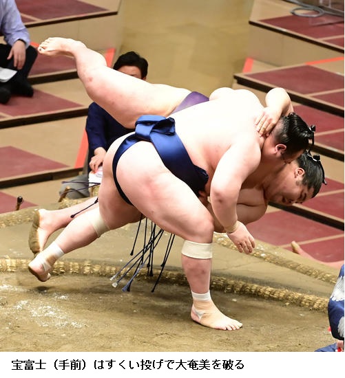 ▽大奄美に宝富士は宝富士がすくい投げ。