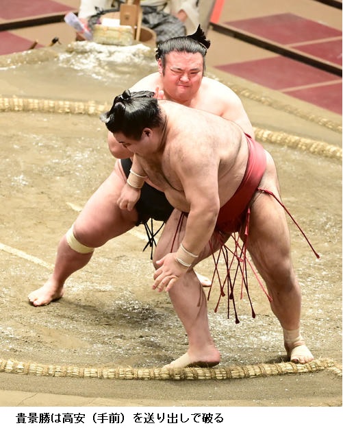 ▽関脇 高安に大関 貴景勝は貴景勝が送り出しで勝って2敗を守りました。