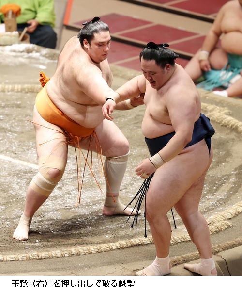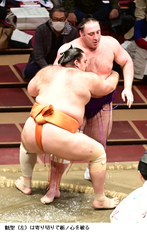 ▽栃ノ心に魁聖は、魁聖が寄り切り。