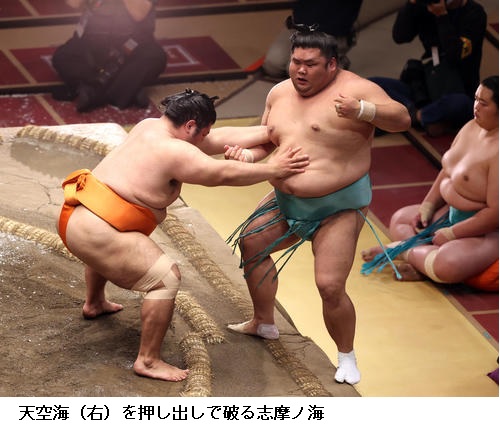 ▽志摩ノ海に石浦は志摩ノ海が押し出し。
