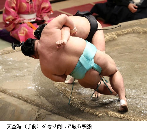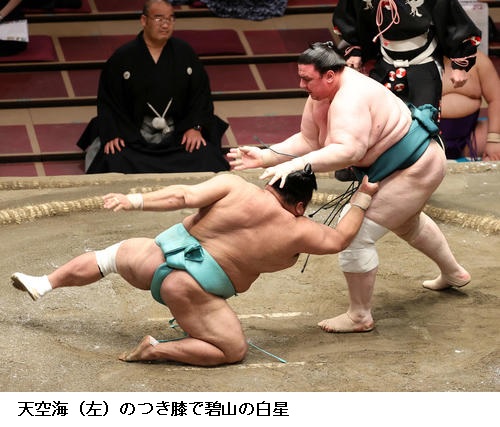 ○天空海 (掛け投げは)前に圧力かけながら、相手が出てきてくれたんでうまく投げられた。(今場所は)下半身がバタバタで内容が悪かった。どう対処するか勉強しないと。