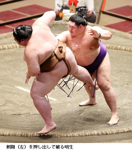 ○剣翔 右からでも左からでもすくって前に出ようと思っていた。作戦通りといえば作戦通り。(7敗で踏ん張り)まだ負け越したわけじゃないんで、4連勝できるよう頑張りたい。