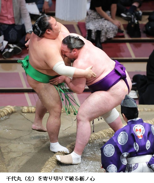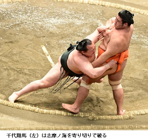 ▽志摩ノ海に千代翔馬は、千代翔馬が寄り切りで勝ち越しです。志摩ノ海は負け越しました。