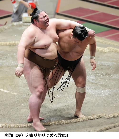▽霧馬山に剣翔は、霧馬山が寄り切り。