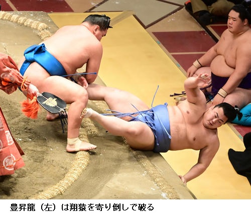 ▽豊昇龍に翔猿は、豊昇龍が寄り倒し。