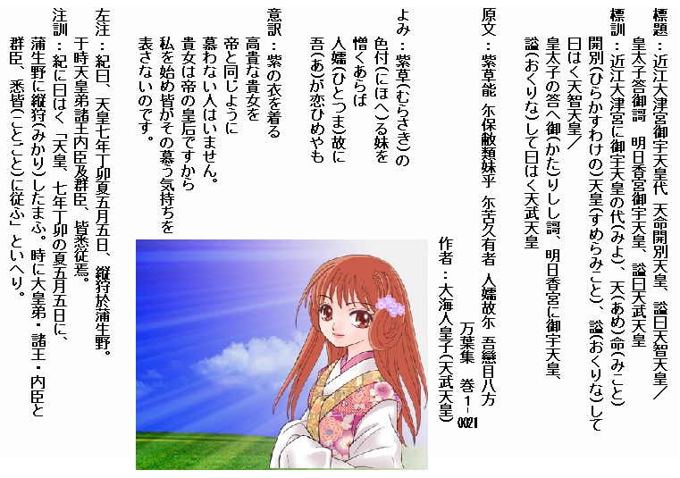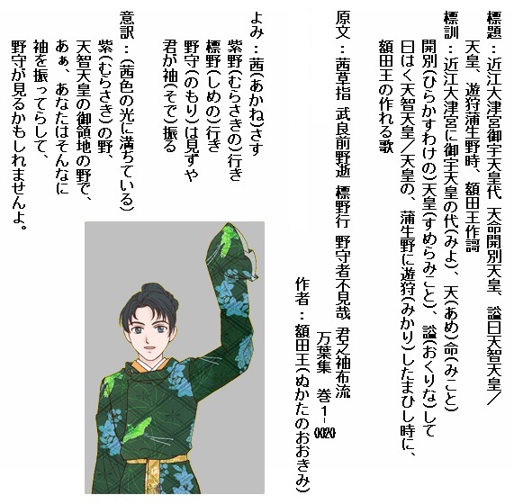 巻1‐0020:あかねさす紫野行き標野行き野守は見ずや君が袖振る