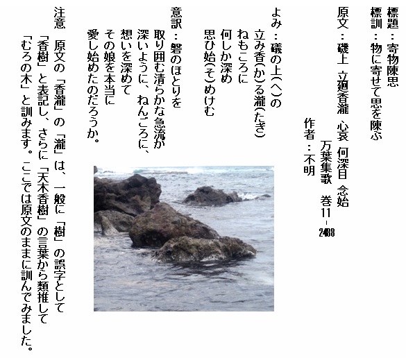 巻11-2488:礒の上に立てるむろの木ねもころに何しか深め思ひそめけむ