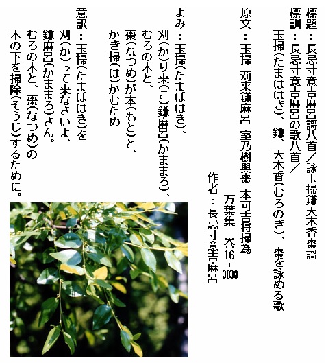 巻16-3830:玉掃刈り来鎌麻呂むろの木と棗が本とかき掃かむため