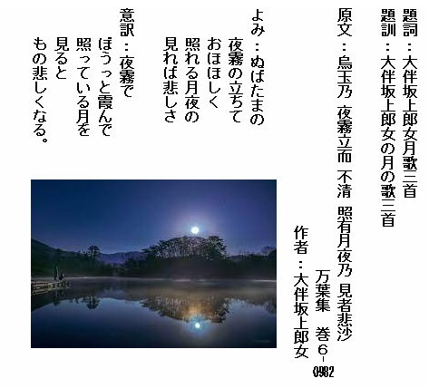 巻6⁻0982:ぬばたまの夜霧の立ちておほほしく照れる月夜の見れば悲しさ