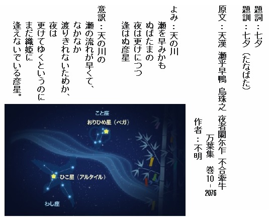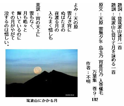 巻9-1712:天の原雲なき宵にぬばたまの夜渡る月の入らまく惜しも