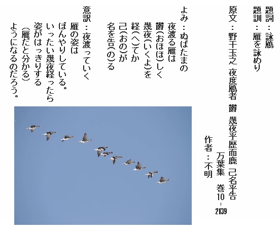 白雲の たなびく国の 青雲(あをくも)の 向伏(むかふ)す国の 天雲の 下なる人は 吾のみかも 君に恋ふらむ 我のみかも 君に恋ふれば 天地に 言(ことば)を満てて 恋ふれかも 胸の病(や)みたる 思へかも 心の痛き 妾(な)が恋ぞ 日に異(け)に益(まさ)る 何時(いつ)はしも 恋ひぬ時とは あらねども この九月(ながつき)を 吾が背子が 偲(しの)ひにせよと 千代(ちよ)にも 偲ひわたれと 万代(よろづよ)に 語り継(つ)がへと 始めてし この九月(ながつき)の 過ぎまくを いたもすべ無み あらたまの 月の変れば 為(せ)むすべの たどきを知らに 岩が根の 凝(こご)しき道の 岩床の 根(ね)延(は)へる門(かど)に 朝(あした)には 出で居(ゐ)て嘆き 夕(ゆふへ)には 入り居(ゐ)恋ひつつ ぬばたまの 黒髪敷きて 人の寝(ぬ)る 味寝(うまゐ)は寝ずに 大船の ゆくらゆくらに 思ひつつ 吾が寝(ぬ)る夜らは 数(よ)みも敢(あ)へぬかも