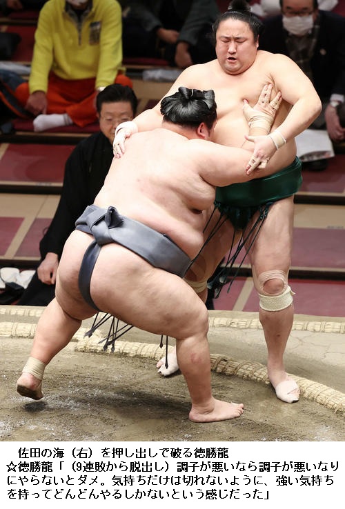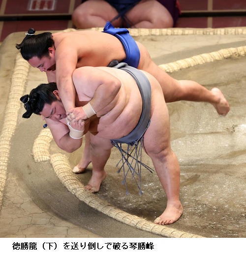 ▽佐田の海に徳勝龍は、徳勝龍が押し出し。