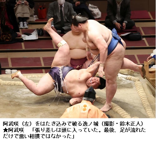 ▼阿武咲に逸ノ城は逸ノ城がはたき込みで勝ち越しました。