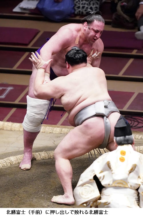 ▼栃ノ心に北勝富士は北勝富士が押し出し。
