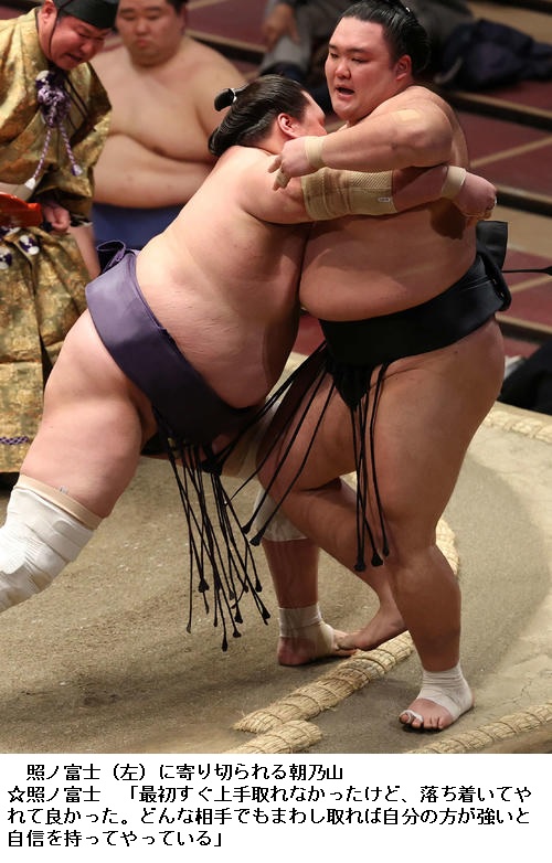 ▽照ノ富士は白星をふた桁に。「毎日、やることを精いっぱいやっているだけだ。よく稽古をしてきたことが自信に結びついている」と淡々と話していました。