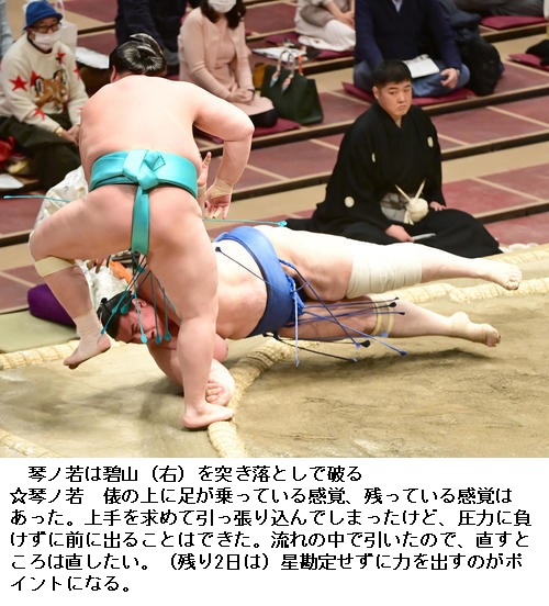 ▽琴ノ若に碧山は琴ノ若が突き落とし。
