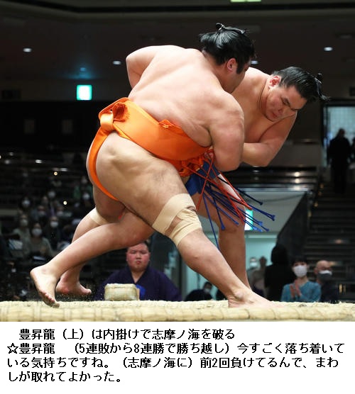 ▽志摩ノ海は勝ち越し。「うれしいがまだ千秋楽がある。一瞬喜んだが、切りかえてあす頑張りたい。粘っこい相撲ができたらいいと思う」と気を引き締めていました。