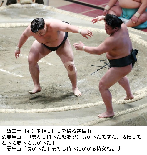 ▽霧馬山に翠富士は、霧馬山が押し出しで勝ち越し。