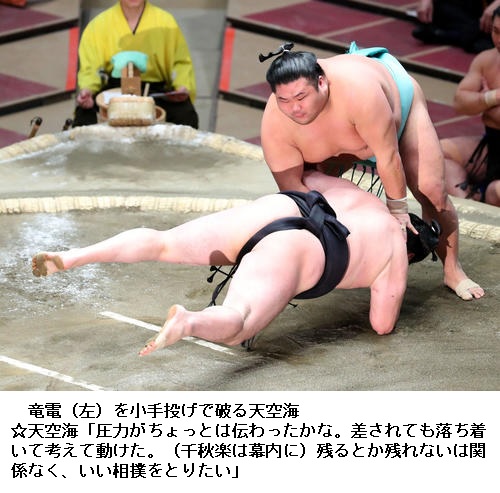 ▽天空海に竜電は、天空海が小手投げ。