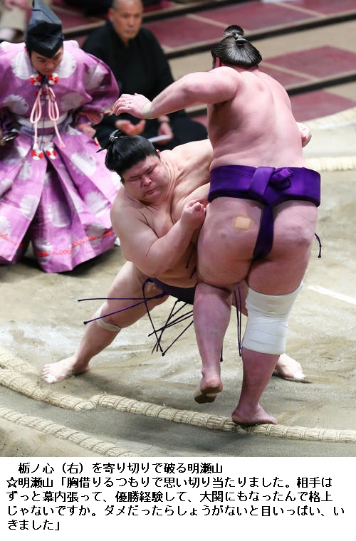 ▽明瀬山に栃ノ心は、明瀬山が寄り切り。