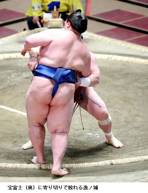 ▽逸ノ城に逸ノ城に宝富士は、宝富士が寄り切り。