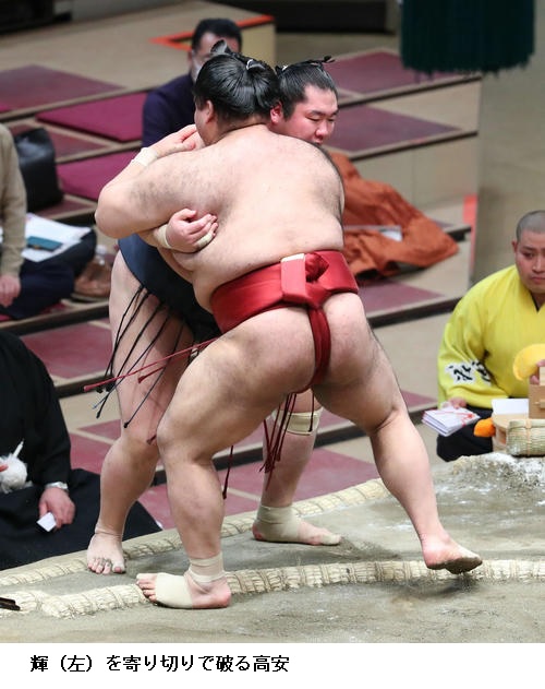 ▽輝に小結・高安は、高安が寄り切り。