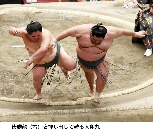 ▽徳勝龍に十両の大翔丸は大翔丸が押し出しで勝ちました。